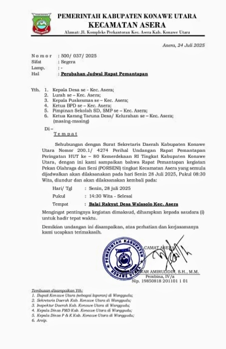 Dengan demikian, situasi yang sempat memanas di Kecamatan Asera diharapkan dapat kembali kondusif dengan mengedepankan transparansi, komunikasi, dan tanggung jawab bersama antar pemerintah kecamatan dan desa. (**)